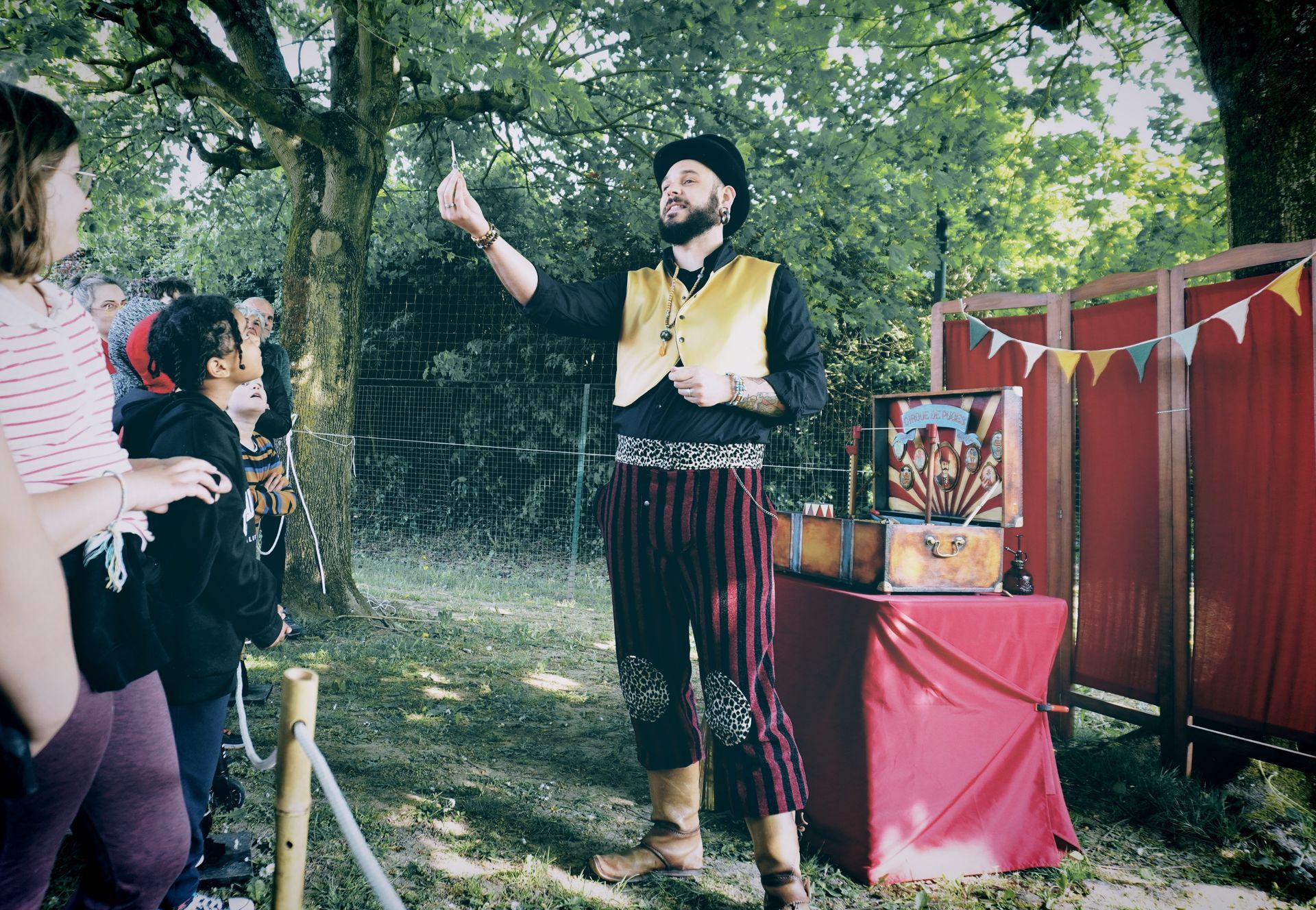 5x5m sur sol plat dans un lieu intimiste (prévoir lieu de replis en cas d’intempérie)