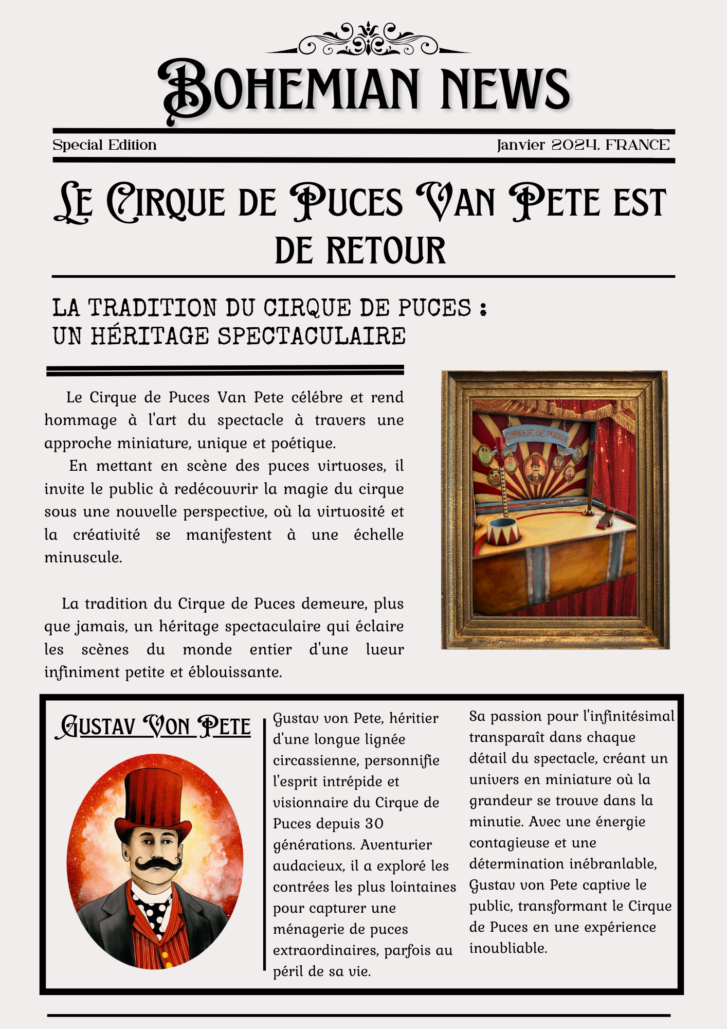 « ... Tommy va, devant vos yeux ébahis, soulever une allumette. Pour vous soulever une allumette paraît dérisoire. Mais remis à l'échelle d’une puce, cela représente une charge de 2,5 tonnes, c'est énorme!Monsieur, si je vous demande de soulever un éléphant y arriveriez vous? -Non-Tommy lui, il peut. »